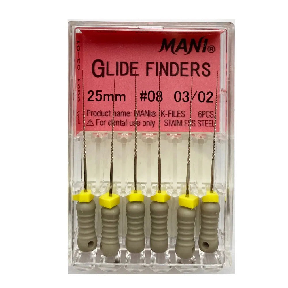 MANI Glide Finders 25mm – precision-engineered endodontic files designed to establish a flawless glide path with extended reach. These meticulously crafted files feature a unique multi-tapered design, combining a 3% taper at the tip and a 2% taper along the shank for optimal resistance and flexibility. With lengths extended to 25mm, these files provide enhanced access, making them ideal for navigating diverse root canal anatomies. Experience efficient calcification penetration and choose from various ISO sizes, including #08, #10, #12, and #15, ensuring versatility for a wide range of endodontic procedures. Elevate your practice with MANI Glide Finders 25mm – where extended reach meets unparalleled precision. Trust MANI for cutting-edge solutions in endodontic instrumentation.